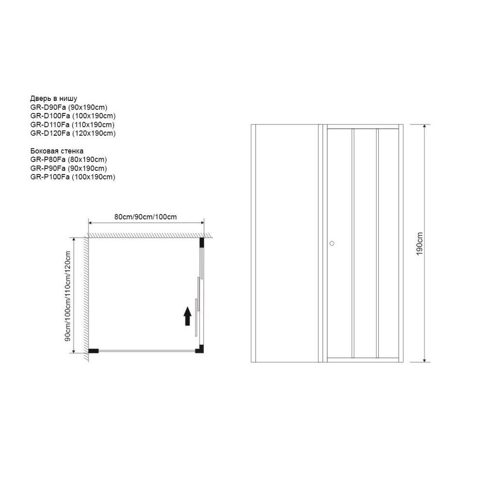Душевая стенка Grossman Falcon имеет размер 90х190 см. Прямоугольная форма, цвет профиля — хром, исполнение полотна двери — прозрачное. Конструкция состоит из 1 неподвижной секции. Устанавливается в облицованный кафелем угол или нишу ванной комнаты на поддон или на пол с душевыми дверями