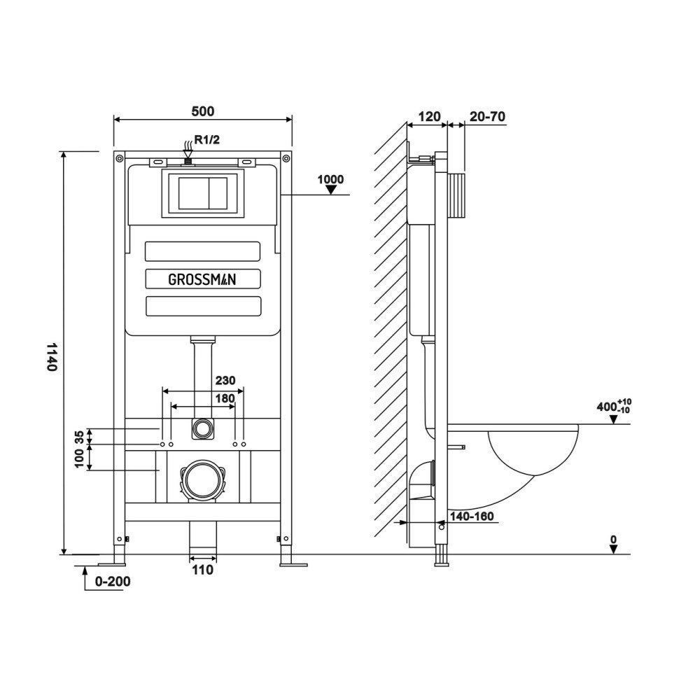 Инсталляция для унитаза Grossman с клавишей смыва Classic — это система, предназначенная для установки подвесного унитаза. Конструкция представляет собой прочную раму и бачок скрытого монтажа объемом 9 литров.