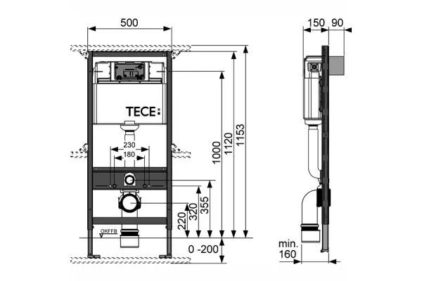 Комплект для подвесного унитаза Tece Tecebase 2