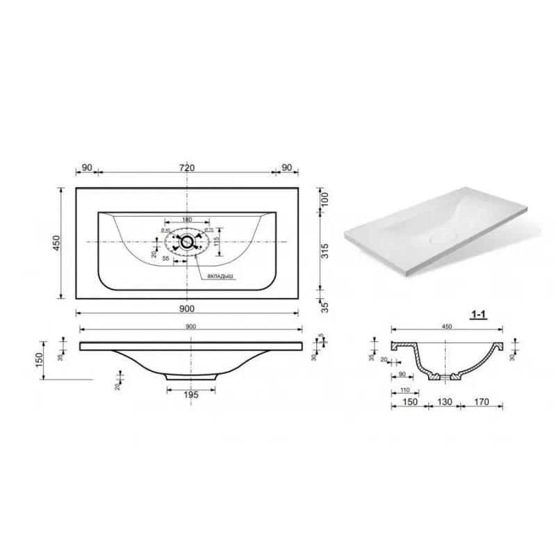 | Отверстия под смеситель | На 1 отверстие |