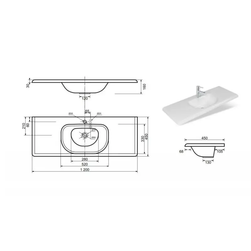 | Отверстия под смеситель | На 1 отверстие |