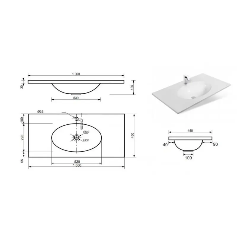 Раковина мебельная Эстет Вегас 100х45 Белый глянцевый ФР-00000994