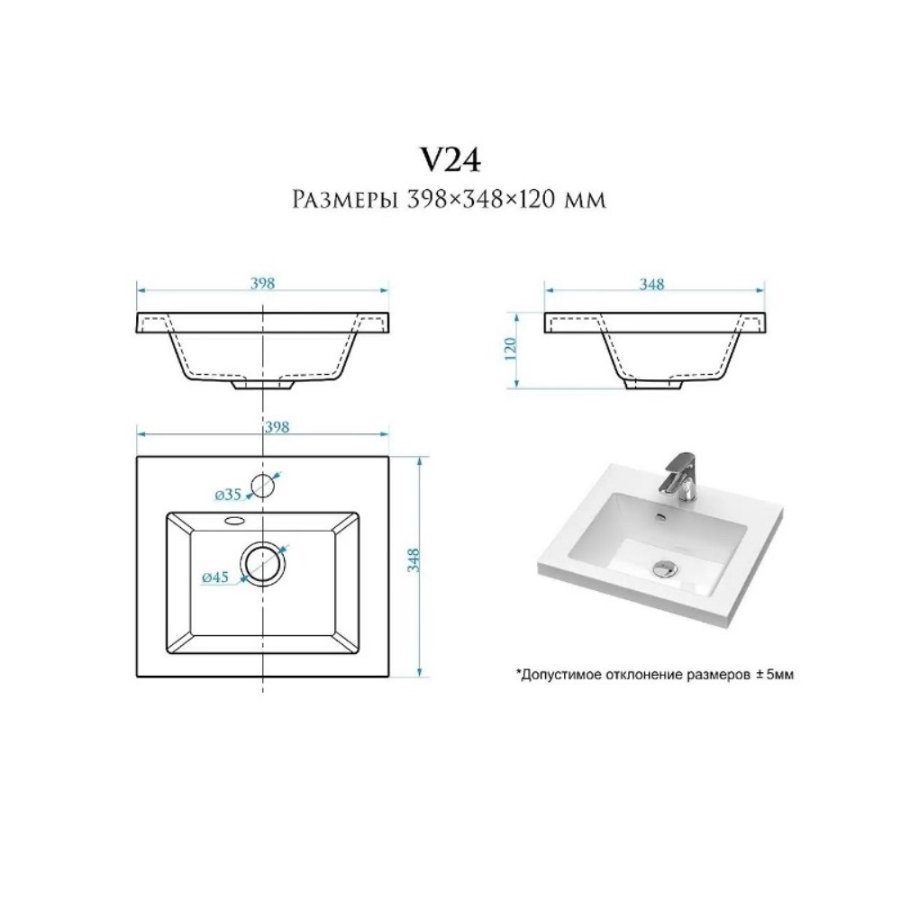 Раковина на мебель Uperwood Eva 39,8 Белый глянцевый 4548340000