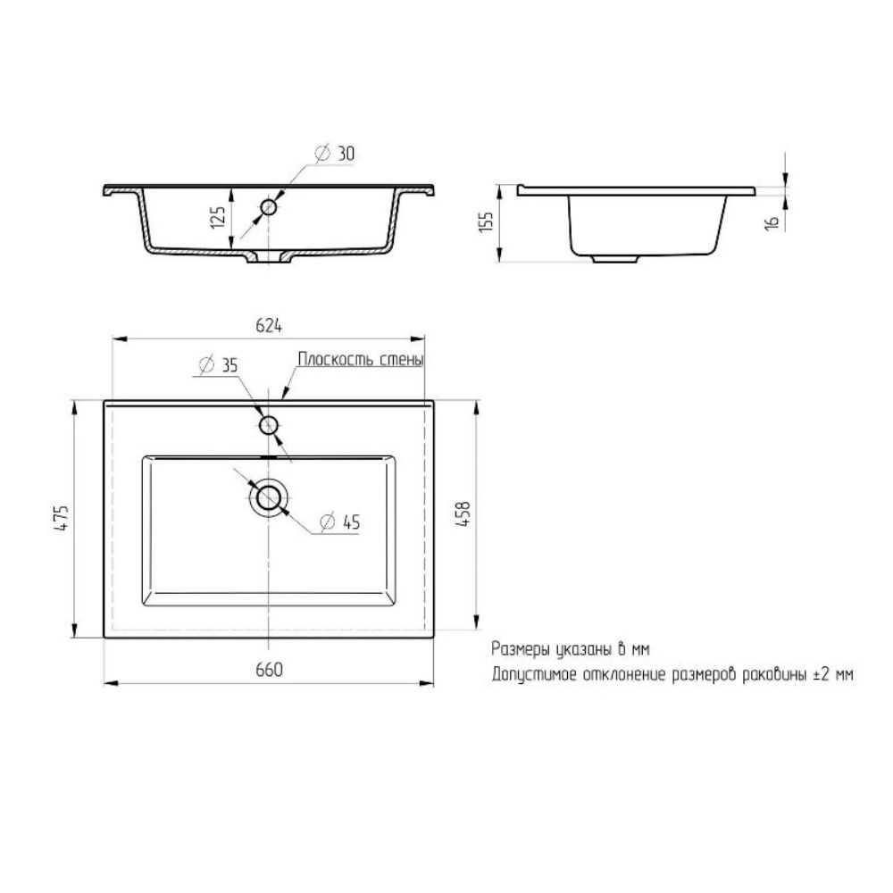 | Форма | Прямоугольная |