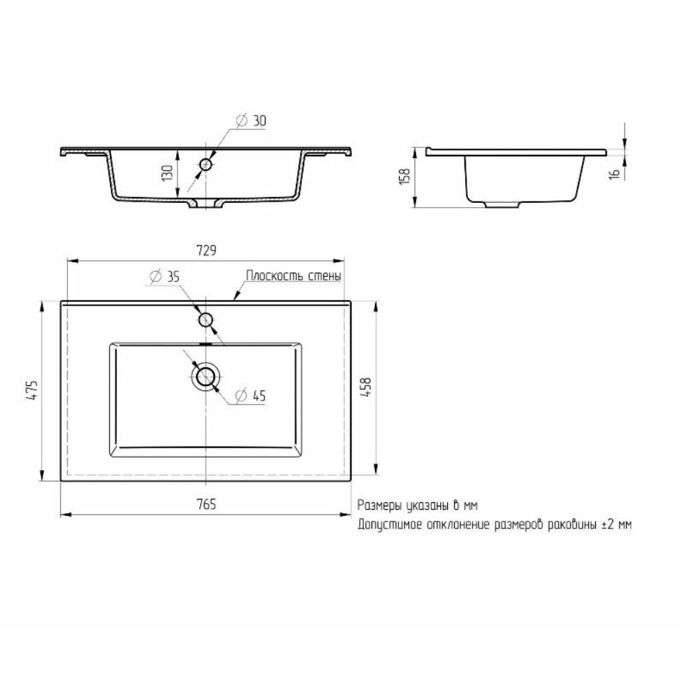 | Форма | Прямоугольная |
