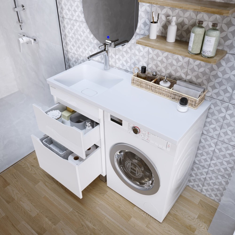 Раковина под стиральную машину Grossman Камилла 110 левая + кронштейн Белый глянцевый 1101031
