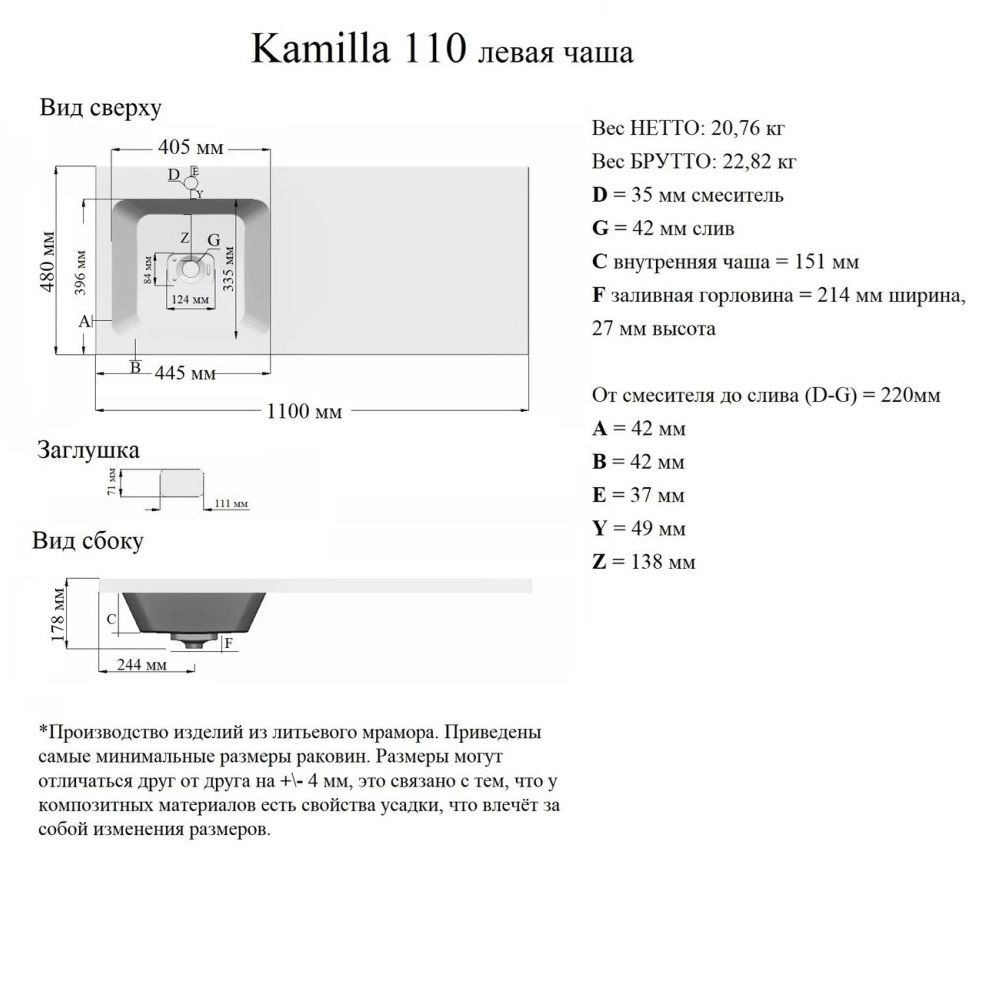 Раковина под стиральную машину Grossman Камилла имеет размер 110х48 см, обладает прямоугольной формой. На 1 отверстие для смесителя. Модель гармонично впишется в интерьер любой ванной комнаты.