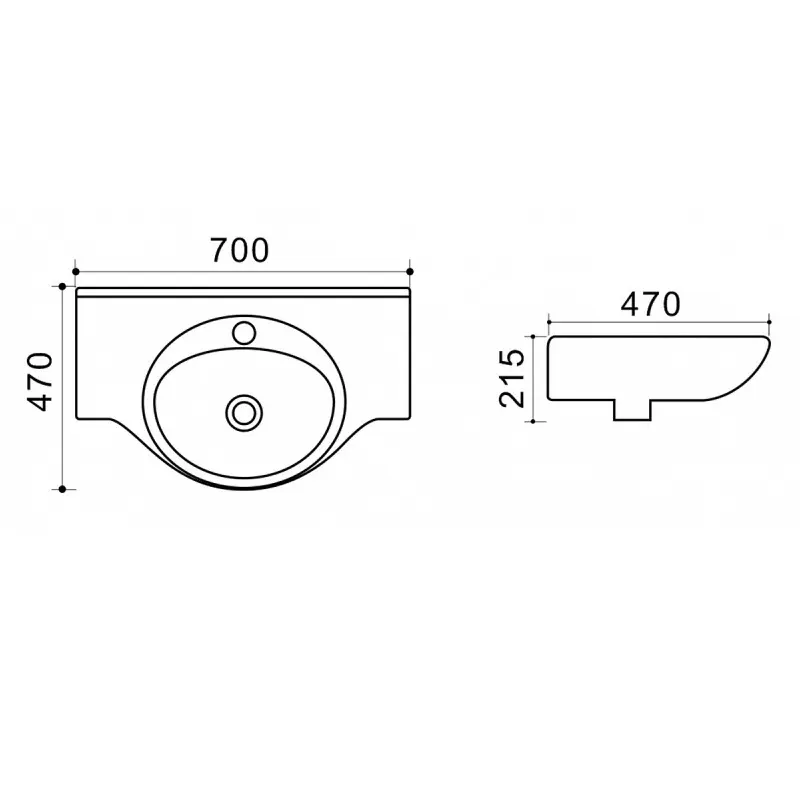 Раковина подвесная Azario AZ имеет размер 70х47 см, обладает полукруглой формой, оборудована одним отверстием для смесителя. Модель гармонично впишется в интерьер любой ванной комнаты. Материал изготовления фаянс.
