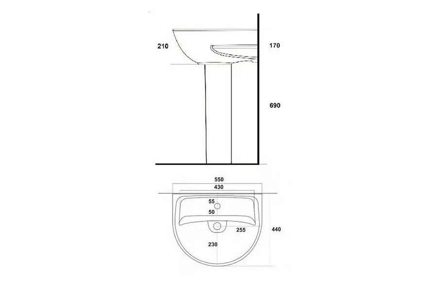 Раковина подвесная Sanita Эталон имеет размер 55х44 см, обладает полукруглой формой, оборудована одним отверстием для смесителя, расположенным по центру. Модель гармонично впишется в интерьер любой ванной комнаты.