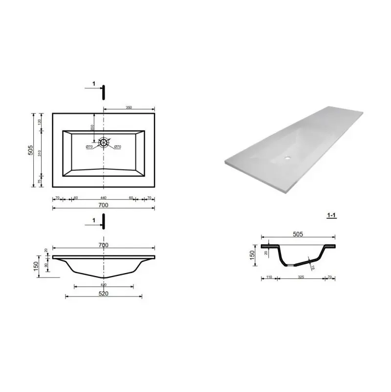 | Отверстия под смеситель | На 1 отверстие |