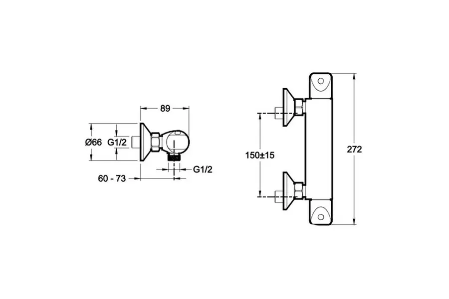 Смеситель для душа Jacob Delafon Robust E75771-CP изготовлен из качественной латуни и имеет защитное покрытие, что способствует устойчивости к коррозии и резким перепадам температуры. Управление термостатическое, настенный монтаж на два отверстия.