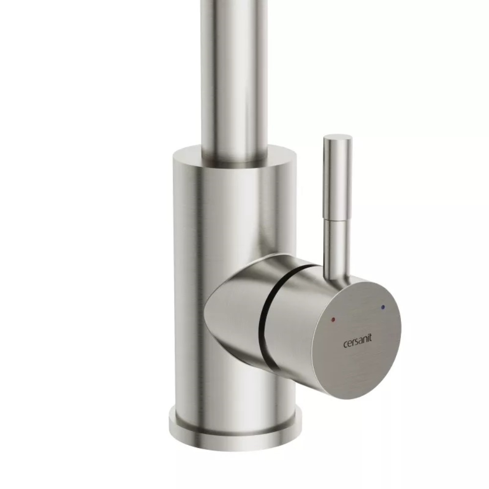 Смеситель для кухни Cersanit Como имеет поворотный излив. Изготовлен из качественной латуни и имеет защитное покрытие, что способствует устойчивости к коррозии и резким перепадам температуры. Рычажное управление, горизонтальный монтаж на одно отверстие.