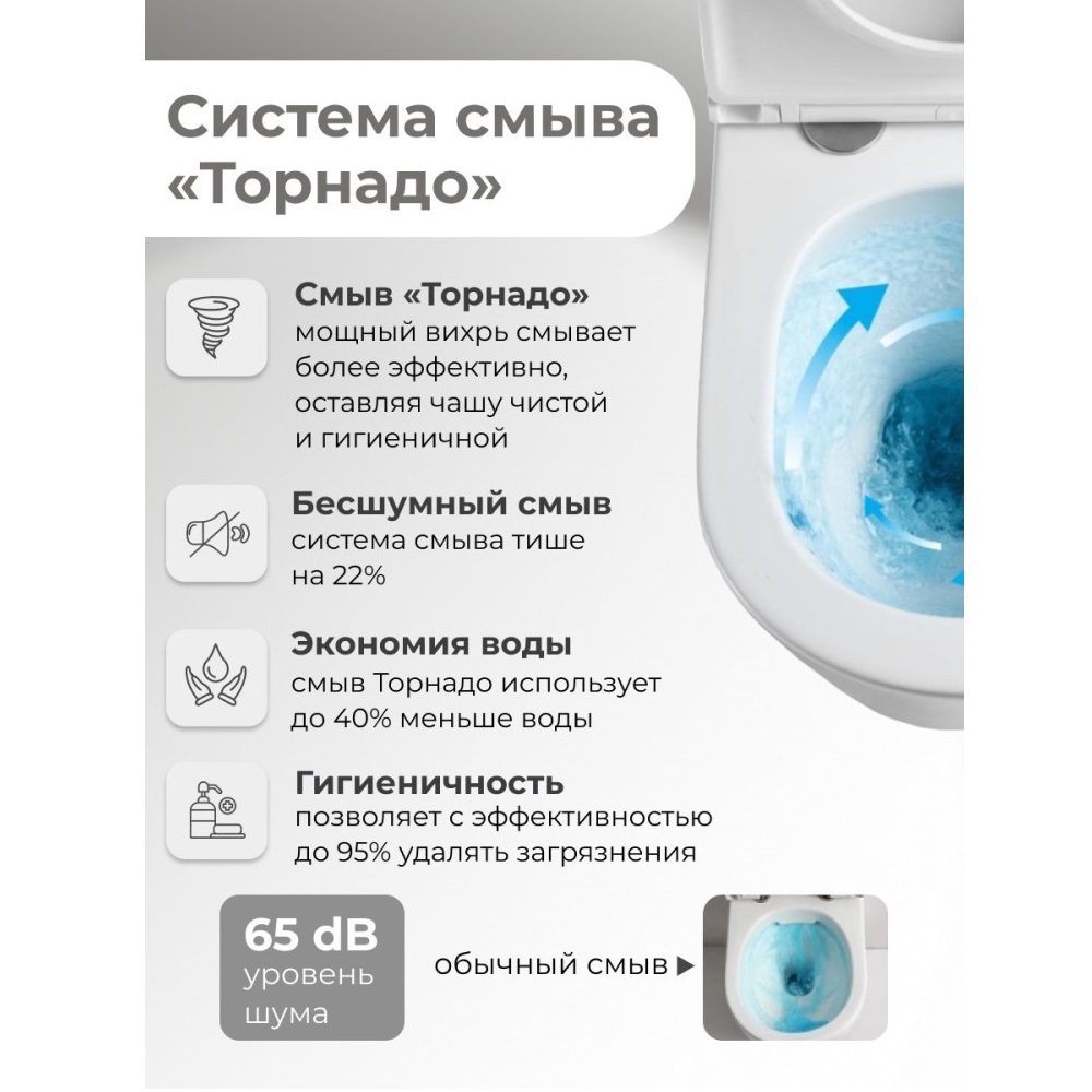 Унитаз подвесной Grossman Tornado с крышкой-сиденье предназначен для установки с системой инсталляции срытого монтажа. Чаша унитаза имеет овальную форму и изготовлена из санфаянса.