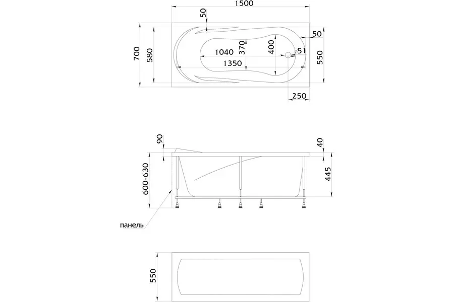 Данный товар: Ванна акриловая 1MarKa Medea 150х70 Белый 01ме1570